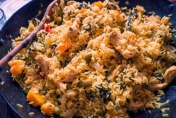 Se puede servir acompañado por frijoles de la olla y tortillas de maíz o también acompañado de papas fritas o incluso por arroz blanco, al gusto de cada cual.