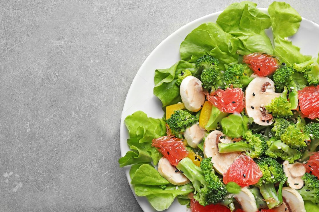 Corta el corazón de la lechuga y distribúyelo en ese platón con el brócoli, el jamón y los champiñones.